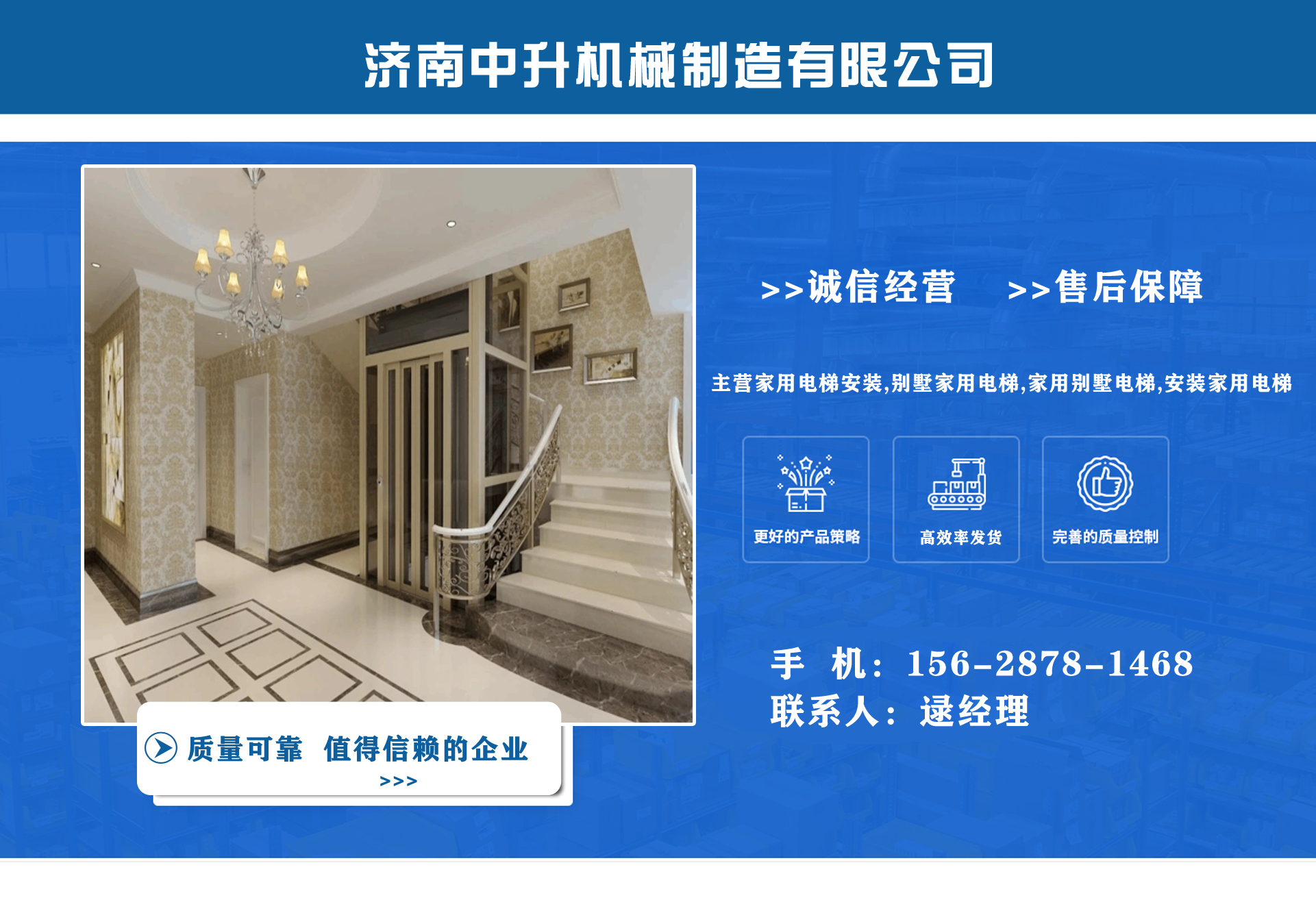 濟南中升機械制造有限公司主營家用電梯安裝,別墅家用電梯,家用別墅電梯,安裝家用電梯等業(yè)務,質量可靠,值得信賴! 公司為客戶提供免費上門測量,根據實際情況1對1服務,保障符合用戶需求,終身提供售后服務,讓用戶買的舒心用的放心。匠心團隊,打造信賴產品,我們有團結、奮進拼搏的匠心團隊,為您提供可信賴的品質保證?! 膭?chuàng)立以來一直嚴格執(zhí)行質量管理體系、環(huán)境管理體系等相關標準管理體系,“顧客滿意”是我們始終如一的追求。我們有屬于自己培養(yǎng)的安裝隊伍,24小時服務電話,為您提供可靠的服務與支持?! ∥覀兊脑妇笆墙ㄔO國內具有影響力的電梯公司,做城市美好空間的好伙伴。...